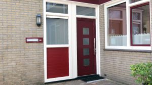 Montage van een dakkapelkozijn en bekleding, Voordeur met zijraam Super mooi gedaan.
