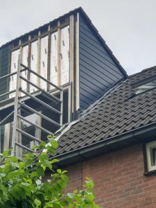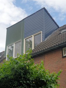 Aan de voor en achterzijde van de woning gevel bekleding aangebracht van keralit inclusief isolatie.