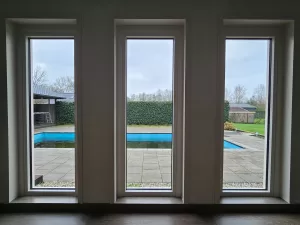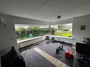 Nieuwe kozijnen in de kamer geplaatst met een tuindeur erin.